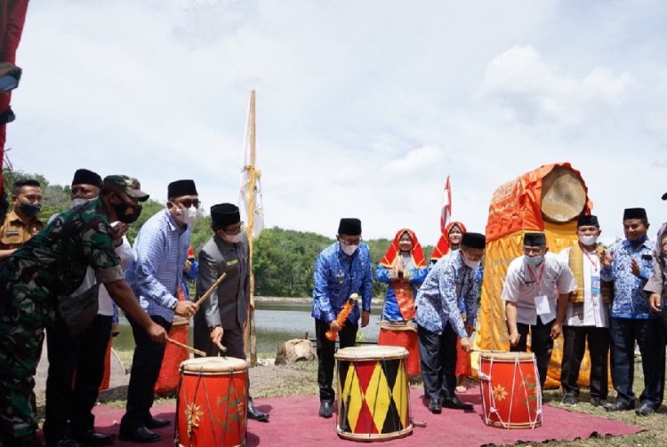 Pembukaan MTQ Nasional Ke V Tingkat Kecamatan Padang Ganting ditandai dengan pemukulan gendang oleh bupati Tanah Datar dan pejabat lainnya, Senin (29/11/2021).
