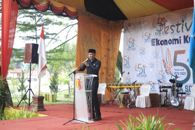 Dalam kapasitasnya sebagai ketua DPRD Kota Solok, Rusdi Saleh sampaikan apresiasi terhadap festival ekonomi kreatif dalam rangka HJK Solok ke 51