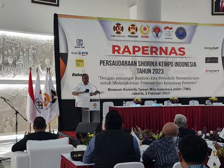 HORIZONE- Mengusung tema: Dengan semangat Bushido kita Perkokoh Persaudaraan untuk Meningkatkan Prestasi dan Kemajuan Perkemi”, Persaudaraan Shorinji Kempo Indonesia (PB.Perkemi) mengadakan Rapat Persaudaraan Nasional (Rapernas) Tahun 2023 bertepatan dengan Hari Ulang Tahun (HUT) Perkemi ke-57, Kamis (2/1/2023) di di Gedung Museum Penerangan Kominfo TMII, Jakarta