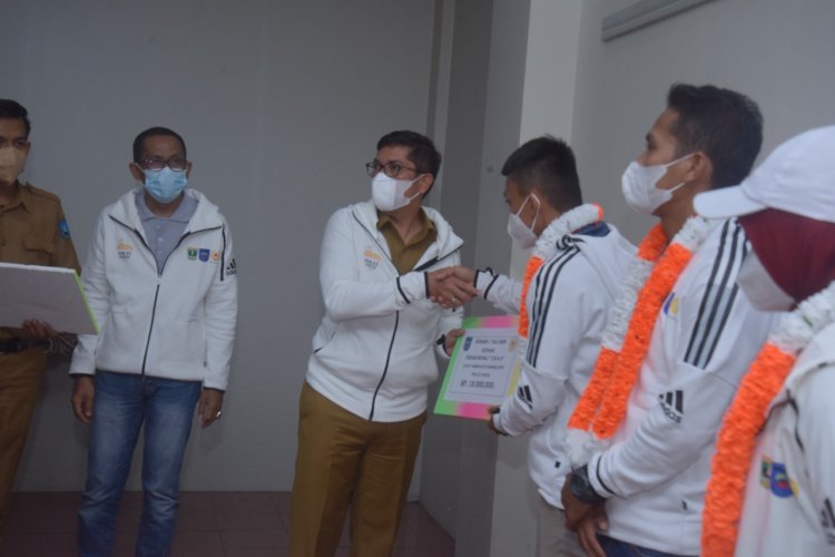 Walikota Sawahlunto Deri Asta secara simbolis serahkan bonus kepada atlet peraih medali emas PON XX
