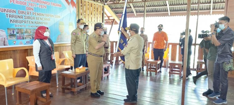 HORIZONE - Pasca pemilihan Ketua Umum Forum Taruna Siaga Bencana (Tagana) beberapa waktu yang lalu, Ketua dan pengurus Forum TAGANA Kampar periode 2021 - 2024 secara resmi langsung dikukuhkan oleh Bupati Kampar H Catur Sugeng Susanto, SH, MH.