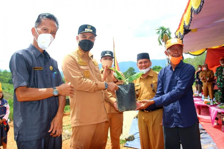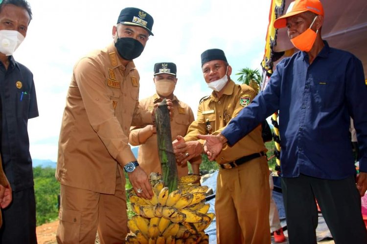 Menyemangati budidaya pisang tanpa jantung itu, Bupati Sijunjung Benny Dwifa Yuswir, S.STP, M.Si bersama Wakil Bupati H. Iraddatillah, S.Pt, kompak melakukan pencanangan penanaman di lahan masyarakat nagari Guguak, Selasa (23/11/2021).
