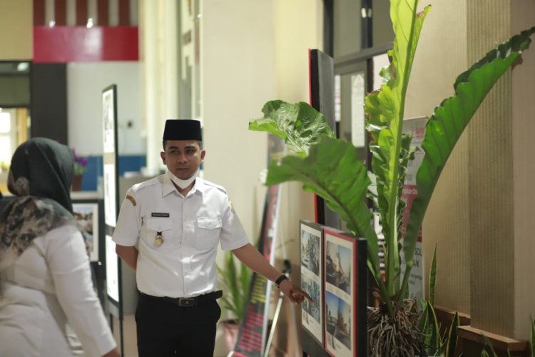 Wakil Walikota DR. Ramadhani Kirana Putra amati hasil karya peserta sayembara penataan kawasan pasar raya, Rabu (8/12/2021).