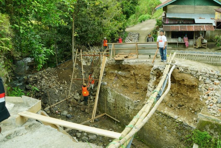 ”Pembangunan kembali jembatan ini dulu janji saya, jadi saat ini saya lihat langsung sampai dimana pengerjaannya,” ucap Eka Putra.