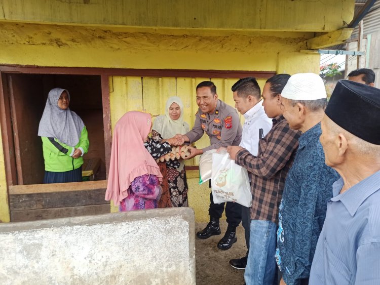 Selepas mengikuti Jum'at Curhat, Waka Polres Solok AKBP Irwa Zani melanjutkan kegiatan menyerahkan bantuan sembako kepada warga kurang mampu di nagari Jawi-Jawi, masing-masing kepada Ani (62), Sita (56), Adriwita (60), Dabih (52) dan Ramana (70).