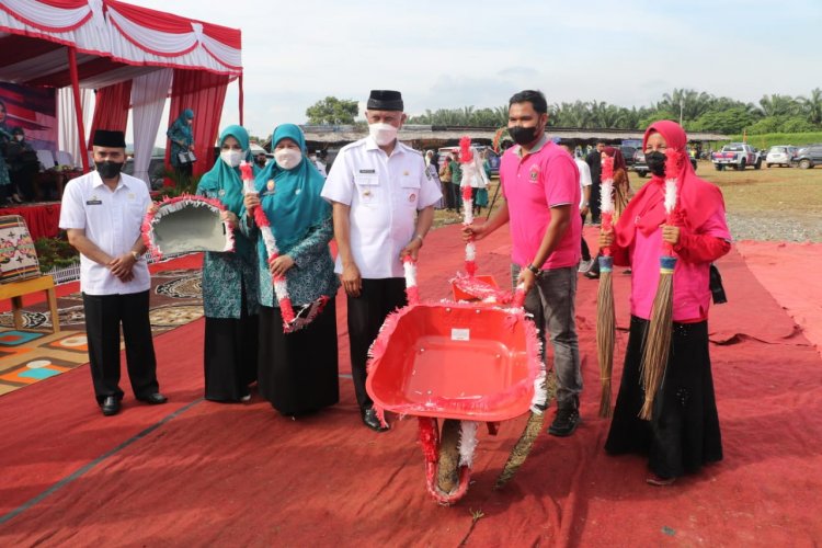 HORIZONE - Dipusatkan di halaman Rumah Adat Nagari Sitiung, Kecamatan Sitiung, Kabupaten Dharmasraya, Gubernur Sumatera Barat, Buya Mahyeldi canangkan Bulan Bhakti Dasa Wisma ke-VI dan Bulan Bhakti Gotong Royong Masyarakat (BBGRM) ke-XIX Tingkat Provinsi Sumatera Barat tahun 2022, Rabu (9/3/2022).