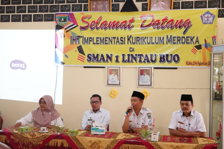 Hal ini disampaikan Bupati dihadapan majelis guru SMA N 1 Lintau Buo saat In House Training (IHT) Implementasi Kurikulum Merdeka, Rabu (24/8/2022) di ruang majlis guru setempat yang turut dihadiri Kasi SMK SLB Cabang Dinas Wilayah IV Dinas Pendidikan Provinsi Sumbar Iyus, Camat Lintau Buo Utara Arif Gani dan Kepala Sekolah SMA N 1 Lintau Buo Syafri.