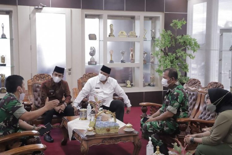 HORIZONE - Kepala Rumah Sakit Tentara (RST) Tingkat IV Solok, Mayor Ckm dr.David Marlynson Purba beserta jajaran mengunjungi Wali Kota Solok Zul Elfian Umar dan Wakil Wali Kota Solok Ramadhani Kirana Putra Jum'at (18/3) di ruang kerja Wako .