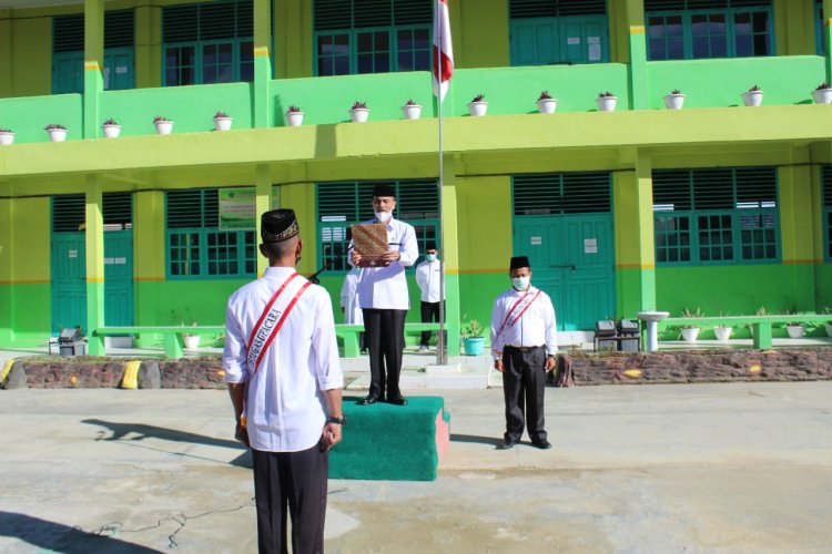 HORIZONE –Keluarga besar Madrasah Tsanawiyah Negeri (MTsN) 3 Solok yang berada di kawasan penghasil di Alahan Panjang, menggelar upcara bendera peringatan Hari Amal Bhakti (HAB) ke 76 tahun 2022, Senin (01/01/2022) di lapangan madrasah setempat.