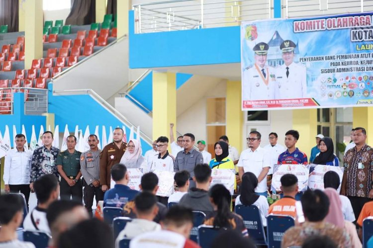 Lounching Penyerahan Uang Pembinaan Atlet Berprestasi dan Motivasi Peraih Emas pada Kejurda, Kejurwil, dan Kejurnas dihadapan Wakil Walikota Solok, Dr.H.Ramadhani Kirana Putra, Kepolres Solok Kota, Dandim 0309/Solok, dan beberapa kepala dinas yang ada dilingkup perintah kota Solok.