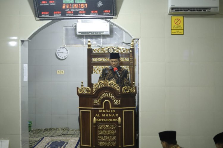 HORIZONE - Kegiatan safari ramadhan Kota Solok yang tergabung dalam tim XI, pada hari pertama mengunjungi masjid Almanar Sawah Sianik, Kelurahan Nan Balimo, kecamatan Tanjung Harapan, Kota Solok,Selasa (5/4/2022) malam.
