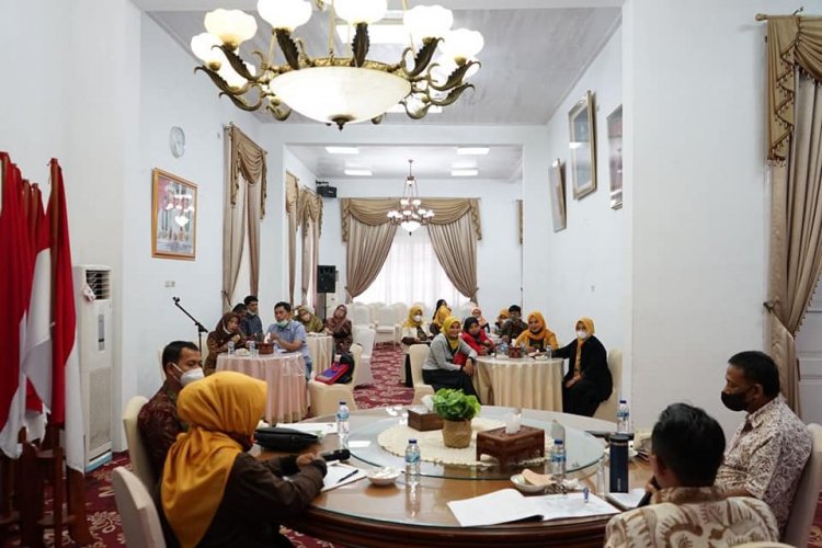 Bupati Tanah Datar Eka Putra didampingi Kadis Koperindag setempat, melakukan audiensi dengan pengurus Pepes dalam upaya mengembangkan organisasi mewadahi UMKM setempat, Minggu (3/10/2021) di Indo Jolito Batusangkar