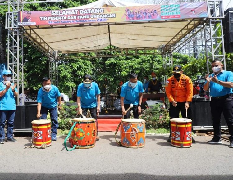 Pembukaan Festival Selaju Sampan Tradisional Badunsanak ditandai dengan pemukulan gendang oleh Walikota Padang Hendri Septa