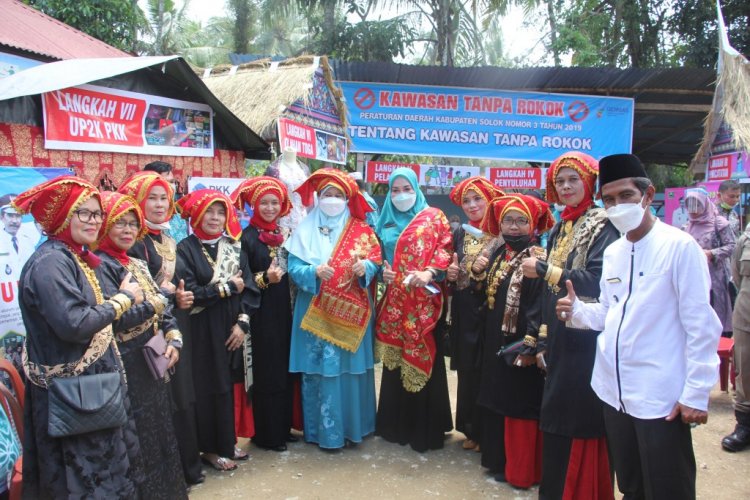 Ketua TP-PKK Sumbar Ny. Harneli Mahyeldi dan Ketua TP-PKK Kab Solok Ny. Emiko Epyardi Asda foto bersama dengan kader posyandu dan bundo kanduang nagari Kotobaru