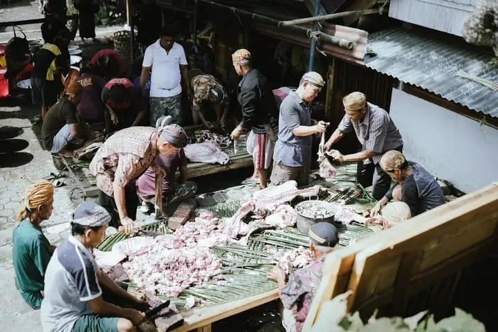 Pada tradisi ini, mereka juga ada yang membawa ayam, kambing dan sapi untuk disembelih (kurban).