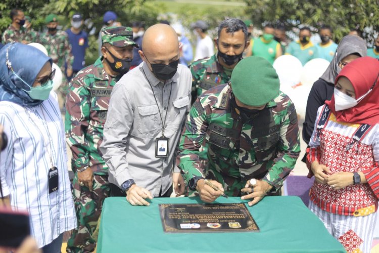 HORIZONE - Pimpinan Cabang (Pinca) BRI Solok Alghanii SE didampingi SPO Widya serta Dandim 0309 Solok Letkol Arm Reno Triambodo S.Sos, M.I.Pol, melaksanakan Launching lapangan Darmawangsa 0309 Skate Zone di Makodim 0309/Solok, Jln. A. Yani No 1 Kota Solok, Kamis (11/11/21).