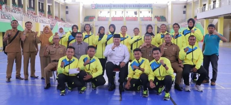 Didampingi Ketua Koni Solok Rudi Horizon, Wali Kota Solok Zul Elfian Umar menyerahkan bonus sebagai motivasi kepada atlet yang telah berjuang di Kejurda Pasaman.