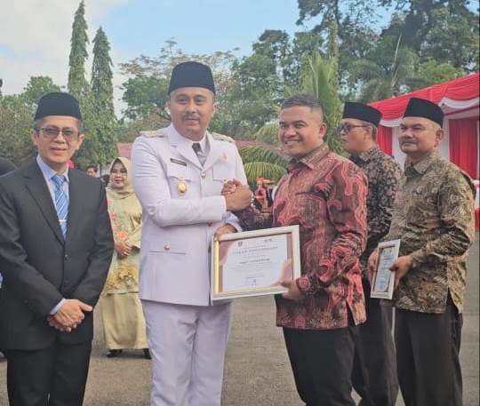 Penghargaan Desa Percontohan Antikorupsi tersebut diserahkan langsung oleh Wakil Gubernur Sumatera Barat Vasko Ruseimy kepada Wali Nagari Talang Babungo Hafizur Rahman, pada momen Upacara Penurunan Bendera Merah Putih, , Minggu (17/08/2025) di halaman kantor Gubernur Provinsi Sumatera Barat.