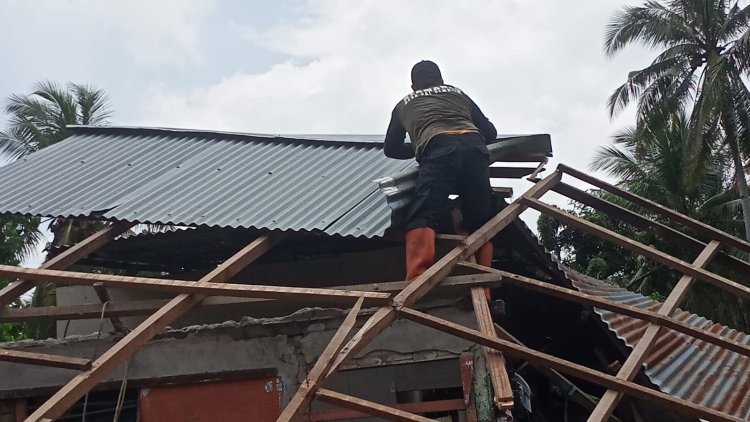 “ Satu rumah roboh akibat derasnya hujan yang disertai tiupan angin kencang, runtuhan material bangunan melukai satu keluarga yang saat itu berada di dalam rumahnya," ujar AKBP Arief.