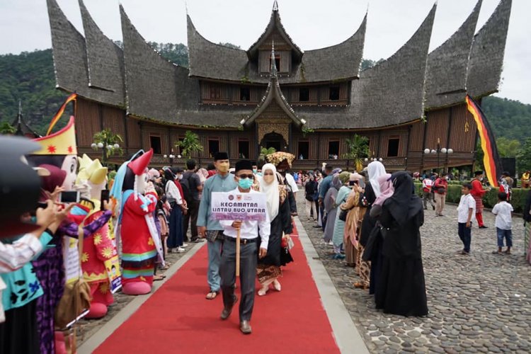 Peragaan budaya dan adat kecamatan di Kabupaten Tanah Datar pada Festval Budaya Mingkabau 2021 di Istano Basa Pagaruyung Batusangkar