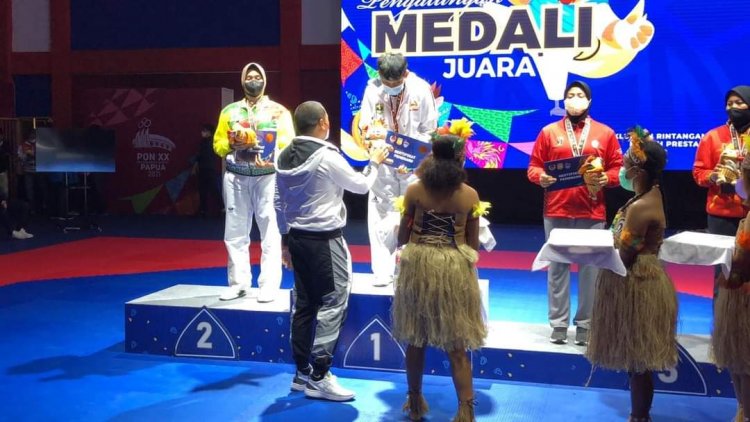 HORIZONE - Atlet Cabang Olahraga (Cabor) Taekwondo asal Padang Pariaman,Delva Rizki, penyumbang medali emas kedua Pekan Olahraga Nasional (PON) XX-2021 Papua, mendapat suport Wakil Gubernur Sumatera Barat (Sumbar) Audy Joinaldy.