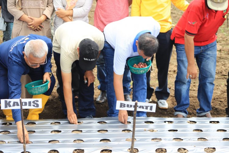 Penanaman perdana Bawang Merah dilakukan Bupati Pessel Rusma Yul Anwar dan Pejabat lainnya