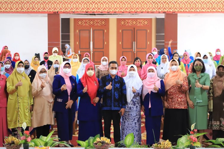 Wabup Rudi hariyansyah foto bersama dengan penasehat GOW Pesisir Selatan, Ny. Yunesti Rusma Yul Anwar dan pengurus organisasi wanita di daerah itu