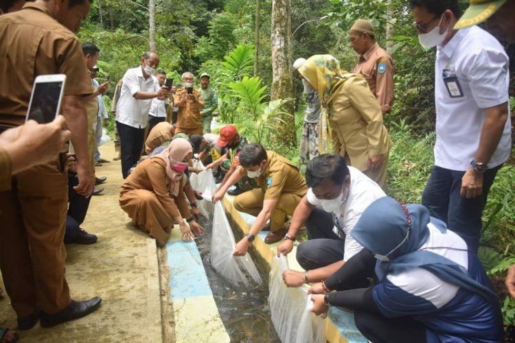 Wali Kota Deri Asta Lepas Bibit Ikan Dari PTBA Ombilin