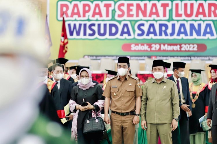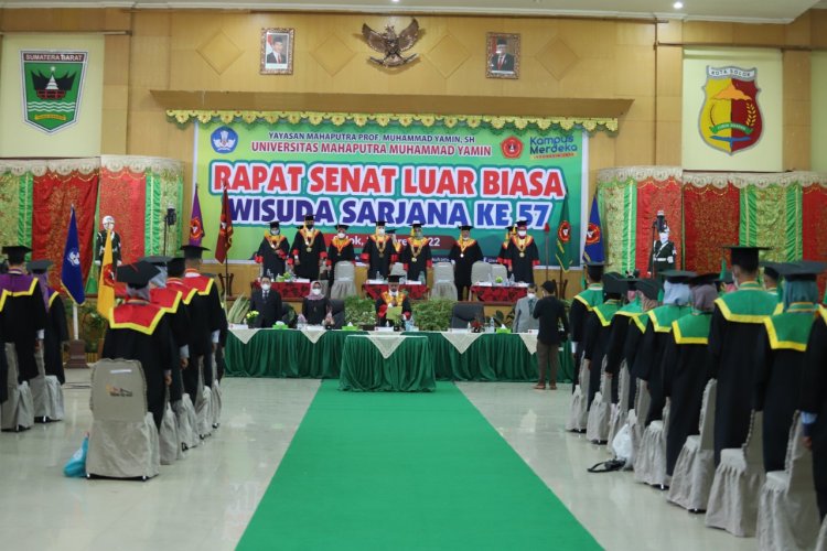 HORIZONE -Universitas Mahaputra Muhammad Yamin (UMMY) Solok menggelar Rapat Senat Terbuka Luar Biasa dalam rangka wisuda Sarjana angkatan ke-57 yang tahun ini mewisuda sebanyak 91 wisudawan/ti, di Gedung Kubuang Tigo Baleh Kota Solok, Selasa (29/03/2022).